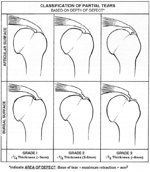 어깨회전근개파열치료의 허와 실 어깨회전근개파열이 있는 경우 파열의 크기나 양상에 따라서 치료적 방향이 달라질 수 있습니다. 이때 파열의 종류는 전층 파열과 부분 파열로 구분할 수 있는데 파열의 크기가 큰 전층파열의 경우, 비수술적 치료는 효과적이지 않으며 수술적 치료를 하는 것이 좋습니다. 상대적으로 파열 크기가 작고 증상이 경미한 부분파열은 두가지 정도로 분류할 수 있는데 관절면측 인대의 파열과 점액낭측 인대의 파열로 구분할 수 있습니다.