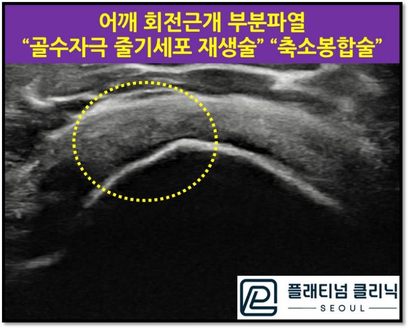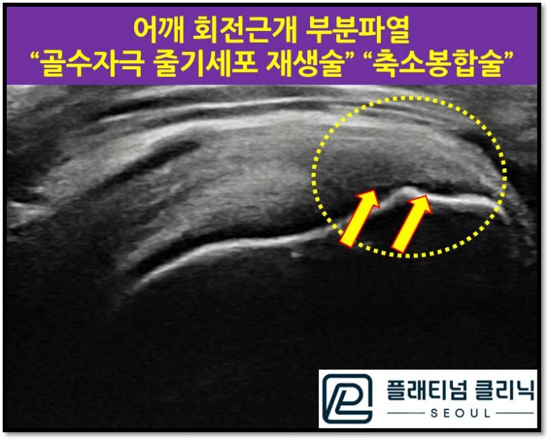 골수자극 줄기세포 재생술 과 축소봉합술 회전근개 부분파열을 치료할 수 있습니다.