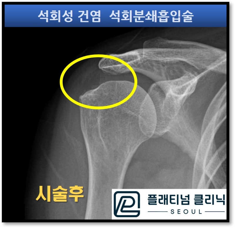 안녕하세요. 정형외과 전문의 이동규원장 입니다. 어깨 석회성건염을 진단받고 고통받으시는 환자분들이 많습니다. 극심한 통증이 올 때는 팔을 잘라버리고 싶을 정도로 너무너무 아픈 질환입니다. 이렇게 심하게 아플 경우 환자들은 주사를 맞아서 잠시 통증을 줄이거나 수술을 해서 석회를 제거를 하는 치료를 하게 됩니다. 하지만 주사를 맞는다고 해서 석회가 없어지지는 않습니다. 또한 석회성 건염은 수술 없이 치료될 수 있는 질환이기 때문에 수술적 치료도 필요치 않습니다. 그렇다면 석회성건염을 수술 없이 어떻게 치료할까요? 바로 석회분쇄흡입술 입니다. 어깨 석회성건염을 비수술적으로 치료하는 시술로 통증을 일으키는 석회를 수술없이 제거할 수 있는 시술입니다. 자세한 내용은 아래 링크를 참고해 주셔도 됩니다. https://blog.naver.com/9690067/223257109207