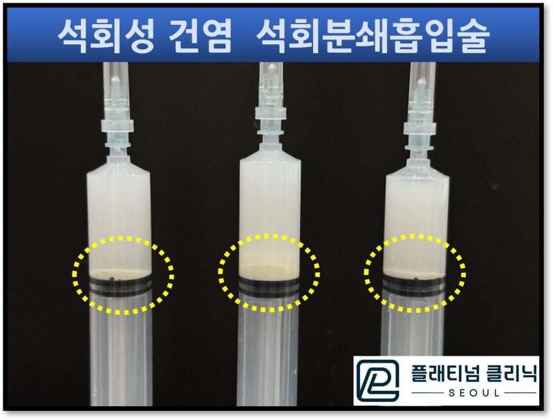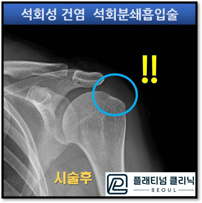 🔗 https://blog.naver.com/9690067/223320621867석회분쇄흡입술이란 말 그대로 석회를 분쇄를 해서 흡입해 낸다는 것입니다. 석회의 양상에 상관없이 딱딱한 석회든 찐득한 석회든 분쇄를 하고 생리식염수를 이용하여 흡입해 내는 시술입니다. 오늘도 케이스를 보여드리겠습니다. 보여드릴 케이스는 40세 여자 환자 분으로 1년간 어깨 석회성 건염으로 너무너무 고생을 하신 분입니다. 타병원에서 주사치료, 충격파 치료 등 안해본 치료가 없다고 하십니다. 주사기로 석회를 흡입해 내는 주사시술을 받았다고 했는데 거의 석회가 나오지 않았다고 합니다. 스테로이드 주사(통증주사)를 맞을 때만 잠깐 좋아졌다 얼마 안 있어서 또 극심한 통증이 반복적으로 재발되어 너무너무 힘들어 하셨습니다. 멀리 경북에서 올라오셔서 제발 석회성 건염 낫게 해 달라고 하시면서 오셨습니다. 그럼 상태를 먼저 보도록 하겠습니다.