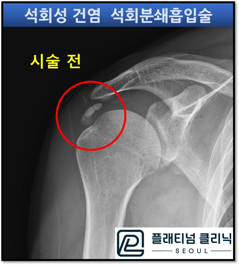 시술전과 비교하여 석회가 거의 다 제거된 것이 관찰됩니다.