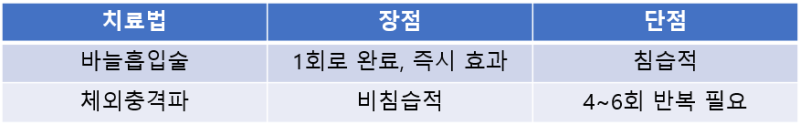 ▲ 석회분쇄흡입술 - 초음파 유도하에 석회 직접 제거 📌 논문 근거: BMC Musculoskeletal Disorders. 2022 • 바늘 흡입술(NACD)과 체외충격파(ESWT) 모두 효과적 • 보존적 치료 실패 시 최소 침습 치료로 권장 ────────────────────────────────────────────────── 치료법 한눈에 비교
