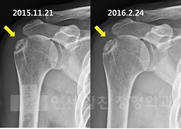 28세 남자 환자로 운동하다 발생한 어깨 탈구가 6주전 발생하였다. 타 병원에서 보전적 치료를 하지고 하였...
