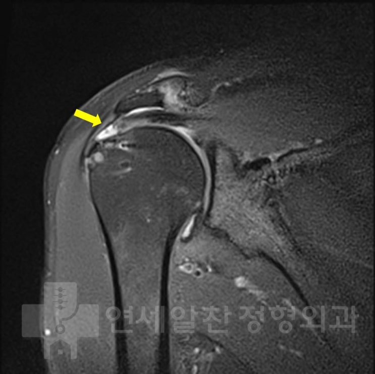 49세 남자 환자 어깨 통증은 주소로 내원하였다. 7년전 회전근개 봉합술 시행받은 과거력 있으며 최근 뽀빠...