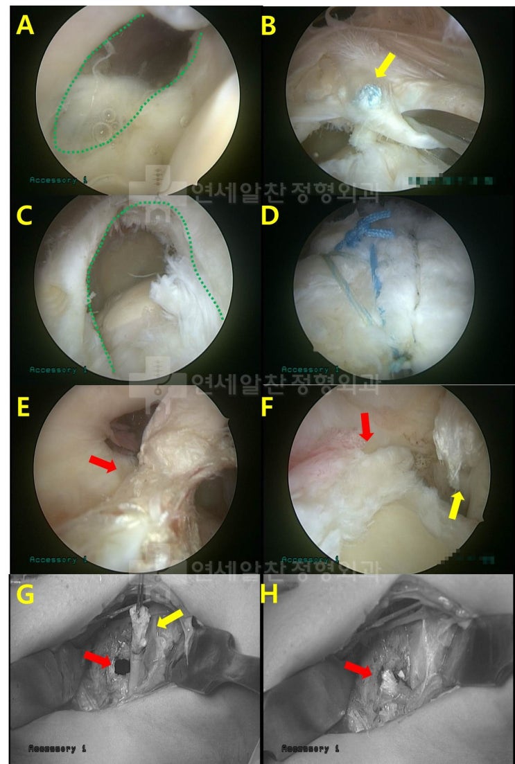 회전근개 파열, 슬랩 봉합술 후 상태에서 회전근개 봉합술 및 이두장건 고정술