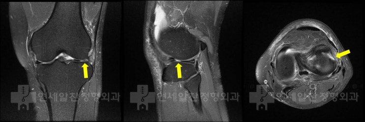 32세 남자 환자로 운동하다 발생한 외측 무릎의 통증을 주소로 내원하였다. 이학적 검사상 apley I/R pos...