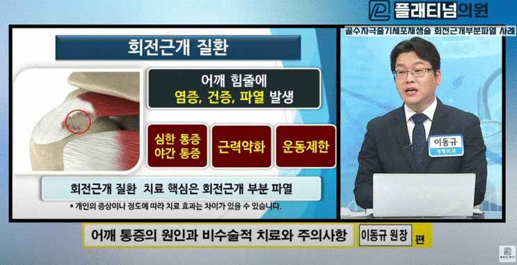 안녕하세요. 정형외과 전문의 이동규 원장입니다. 회전근개 파열로 고생하시는 환자분들이 많습니다. 완전...