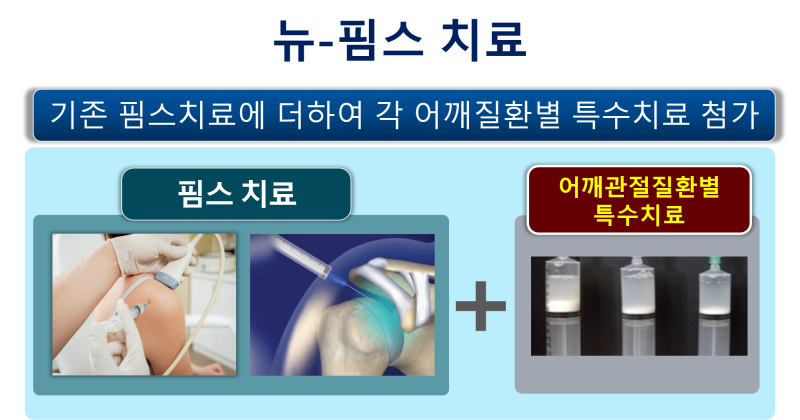 즉 기존 핌스 치료에 각 어깨 질환병 특수치료를 추가하여 시행함으로써 보다 효과적이고 탁월한 치료효과를 보였습니다. 각 질환 별로 특수치료를 개발하여 이를 추가함으로써 환자분들의 질환에 맞게 치료를 할 수 있도록 하였습니다.