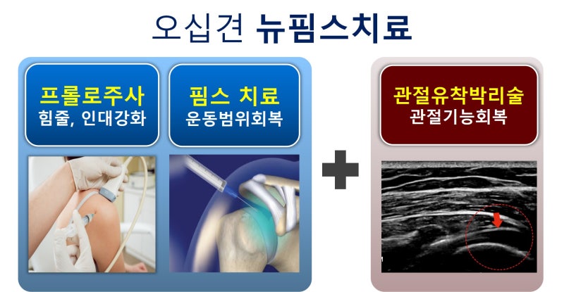 즉 약해진 힘줄이나 조직에 프롤로 주사를 통해 조직의 회복과 통증을 치료하고 특수한 침을 이용하여 근육과 관절낭의 구축을 해소하여 관절가동버위를 회복 시키는 치료 입니다. 하지만 어깨질환의 모든 질환을 이것 만으로 해결한다는 건 어불성설 이겠지요... 석회성 건염, 오십견(유착성 관절낭염), 회전근개 질환(부분파열, 염증, 건증 등등) 이렇게 다양한 질환에 대해 한가지로 다 치료할 수 있다면 얼마나 좋겠습니까. 하지만 무슨 만병 통치약도 아니고... 그래서 이번에 제가 직접 이를 보안하여 개발한 것이 뉴핌스 치료 입니다.