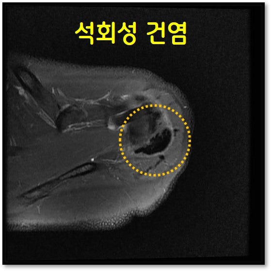 MRI 상 극하근 상부에 커다란 석회가 있는 것이 관찰됩니다.