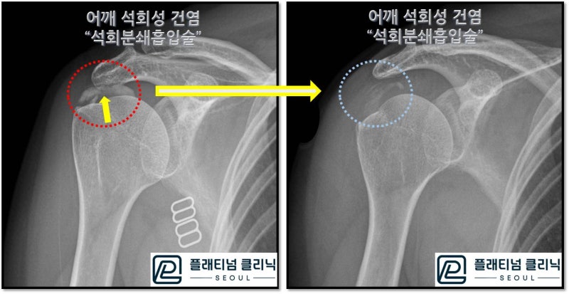 이와 같이 석회가 크다고 하여 수술하는 것이 아닙니다. 석회가 크더라도 석회를 잘 분쇄해서 제거시킬 수 있습니다. 어깨 석회성 건염은 비수술적으로 충분히 치료 될 수 있습니다.