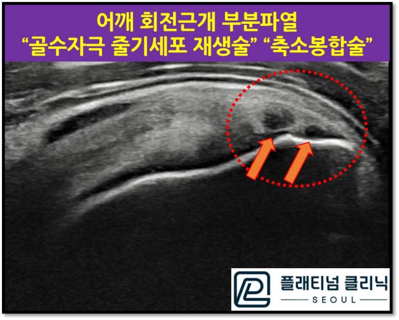 골수자극 줄기세포 재생술 과 축소봉합술 회전근개 부분파열을 치료할 수 있습니다.