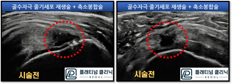 시술 전후 초음파 사진을 비교해 보면 더 명확히 알 수 있습니다. 단면을 본 초음파 영상도 보겠습니다.