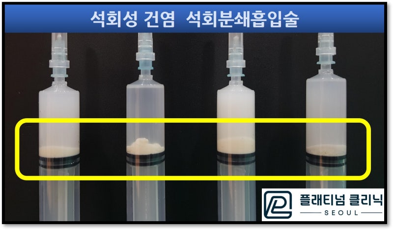 영상을 보시면 치즈같은 석회가 주사기내로 흡입되는 모습이 관찰됩니다.