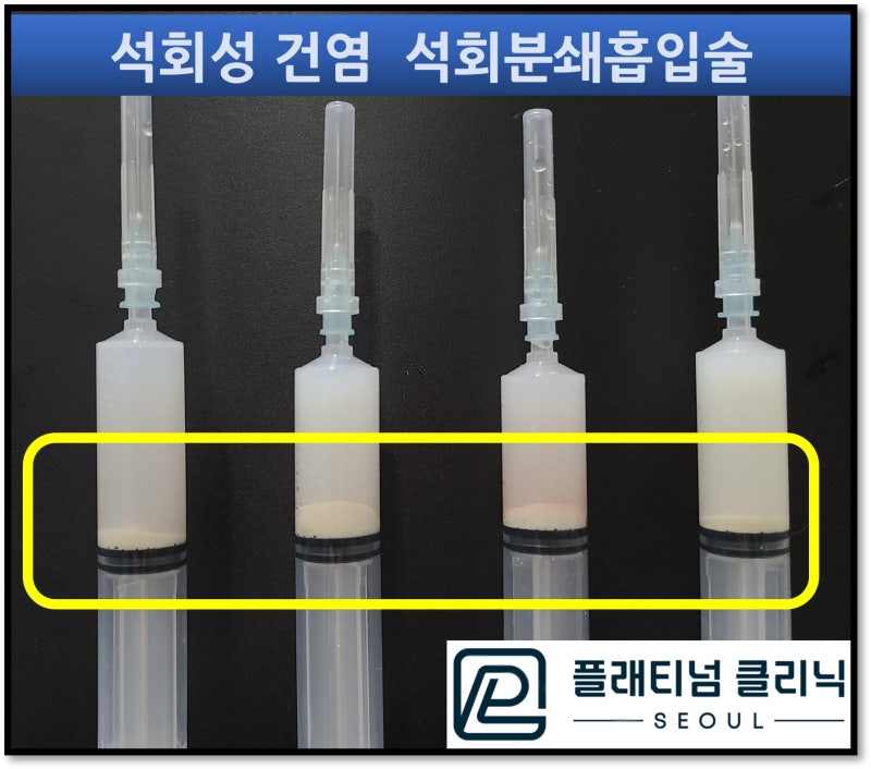 실제로 시술 하면서 제거된 주사기를 보여드리니 엄청 신기해 하기면서 속시원해 하시면서도 눈물을 흘리시는데 여러 감정이 섞여 있으신 것 같았습니다. 석회를 제거하고 난 후 석회로 인한 빈공간과 손상된 힘줄 치료를 위해 힘줄 재생시키는 주사치료(콜라겐 등.)를 시행하였습니다. 힘줄에 국한되어 들어가는 약제로 태아한테 안전한 치료입니다.