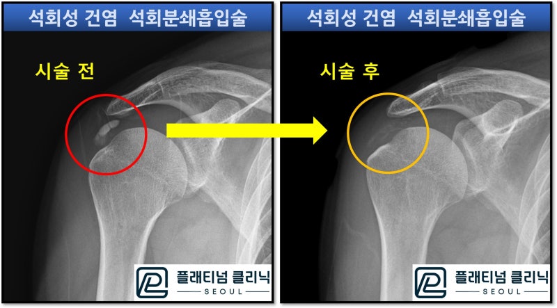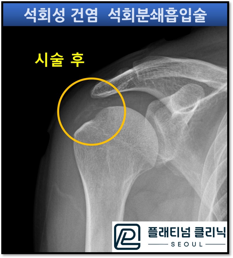 시술전과 비교하여 석회가 거의 다 제거된 것이 관찰됩니다.