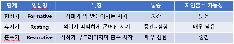 ▲ 석회성건염 개념도 - 회전근개 힘줄에 석회 침착 석회 형성 과정은 3단계로 나뉩니다:
