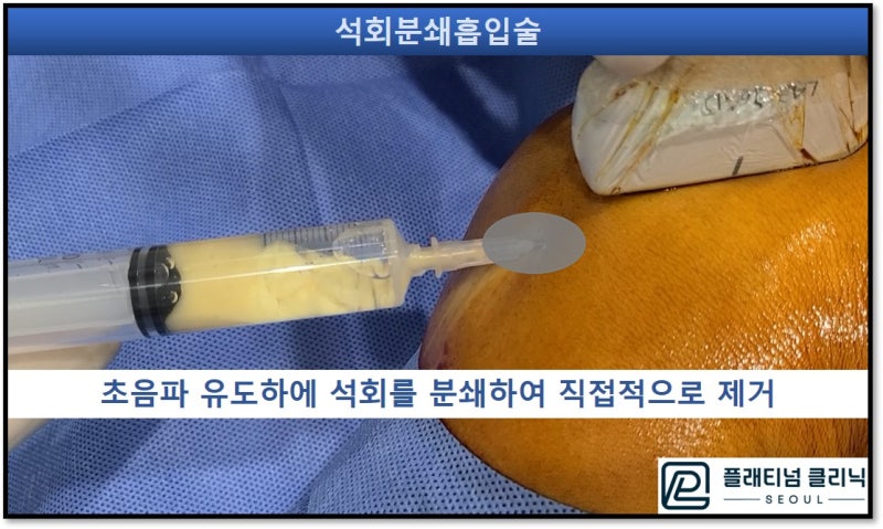 공통점: • 모두 휴지기 석회 - 주사·충격파로 해결 어려움 • 1회 석회분쇄흡입술로 즉시 효과 • 재발 없음 ────────────────────────────────────────────────── 플래티넘의원 석회분쇄흡입술의 차별점 1️⃣ 특허 출원된 특수 제작 기구 일반 병원에서 사용하는 표준 바늘과 달리, 플래티넘의원에서는 특허 출원된 특수 제작 기구를 사용합니다. • 딱딱한 휴지기 석회도 효과적으로 분쇄 • 큰 석회(1.5cm 이상)도 완전 제거 가능 • 시술 시간 단축 (평균 15~25분) ────────────────────────────────────────────────── 2️⃣ 모든 단계 석회 제거 가능 플래티넘의원 석회분쇄흡입술은 형성기, 휴지기, 흡수기 모든 단계의 석회를 제거할 수 있습니다. 타병원에서 "석회가 너무 딱딱해서 안 된다"는 말 들은 환자분들도 플래티넘의원에서 1회 시술로 제거 성공하는 경우가 많습니다. ────────────────────────────────────────────────── 3️⃣ 5000례 이상의 시술 경험 이동규원장은 5000례 이상의 석회분쇄흡입술 경험을 보유하고 있습니다. 숙련된 초음파 유도 기술로 • 정확한 석회 위치 파악 • 주변 조직 손상 최소화 • 시술 시간 단축 • 합병증 예방 ────────────────────────────────────────────────── 4️⃣ 당일 입원/퇴원 시스템 • 오전 시술 → 오후 퇴원 • 필요시 1박 입원 • 일상생활 빠른 복귀 ────────────────────────────────────────────────── 이런 분들께 석회분쇄흡입술을 권합니다 ✔️ 주사치료 3회 이상 받았지만 재발 반복 ✔️ 체외충격파 4~6회 받았지만 효과 없음 ✔️ 석회 크기가 1cm 이상 ✔️ 야간통이 심해서 잠을 못 잠 ✔️ 팔을 들 때마다 찌릿한 통증 ✔️ 빠른 일상 복귀가 필요함 (직장, 육아 등) ✔️ 타병원에서 "수술 고려해야 한다"는 말 들음 2개 이상 해당되시면 석회분쇄흡입술 상담을 권합니다. ────────────────────────────────────────────────── 플래티넘의원의 12주 재활 프로그램 시술/수술만큼 중요한 것이 재활치료입니다. 구조적인 문제를 해결해주는 것이 시술이라면, 기능적인 회복을 해결해주는 것은 재활입니다. 재활치료를 체계적으로, 전문가의 지도하에, 안전하게 꾸준히 시행해야 같은 시술을 받아도 그 효과가 100% 나올 수 있습니다. 플래티넘의원에서는 모든 시술 환자분께 1:1 맞춤 12주 재활운동 프로그램을 운영하고 있습니다. ✔️ 스포츠재활 전문 트레이너가 직접 설계 ✔️ 시술 전 상태, 받은 시술, 직업 등 고려 ✔️ 카카오톡으로 1:1 맞춤형 재활운동 영상 전송 ✔️ 전국 어디서나 자택에서 재활 가능 ────────────────────────────────────────────────── 핵심 정리 ❝ 이 글의 핵심 ❞ 1️⃣ 석회 단계에 따라 치료법이 다릅니다 - 형성기/흡수기: 주사·충격파 고려 - 휴지기 (딱딱한 석회): 석회분쇄흡입술 권장 2️⃣ 주사·충격파 효과 없다면 석회분쇄흡입술 - 1회 시술로 즉시 제거 - 모든 단계 석회 제거 가능 - 큰 석회(1.5cm↑)도 가능 3️⃣ 플래티넘의원 차별점 - 특허 출원 특수 기구 - 1만 건 이상 시술 경험 - 당일 입원/퇴원 - 12주 맞춤 재활 프로그램 ────────────────────────────────────────────────── FAQ Q1. 석회분쇄흡입술 후 재발하나요? A. 재발률은 약 5% 미만으로 매우 낮습니다. 석회를 완전히 제거하면 재발 가능성이 낮습니다. 단, 어깨 사용 습관이나 대사 문제로 새로운 위치에 석회가 생길 수는 있습니다. Q2. 시술 시간은 얼마나 걸리나요? A. 석회 크기와 단계에 따라 다르지만, 평균 15~30분 소요됩니다. 작은 석회는 15분, 큰 석회(1.5cm 이상)는 25분 정도입니다. Q3. 시술 후 통증이 있나요? A. 시술 직후 1~3일 동안 통증이 있을 수 있습니다. 이는 석회 제거 후 힘줄의 자연스러운 반응입니다. 진통제로 조절 가능하며, 1주 후부터는 통증이 크게 감소합니다. Q4. 입원이 필요한가요? A. 당일 입원/퇴원 가능합니다. 오전 시술 시 오후 퇴원, 오후 시술 시 다음 날 오전 퇴원합니다. Q5. 보조기를 착용해야 하나요? A. 석회분쇄흡입술 후 보조기 착용은 필요없습니다. 힘줄 손상이 거의 없기 때문에 바로 일상생활이 가능합니다. Q6. 언제부터 일상생활이 가능한가요? A. 가벼운 일상생활은 1~2주 후부터 가능합니다. 무거운 물건을 드는 작업이나 운동은 4~6주 후부터 권장합니다. Q7. 충격파 4회 받았는데 효과 없었어요. 석회분쇄흡입술 해도 되나요? A. 네, 가능합니다. 충격파로 효과 없는 석회는 크기가 크거나 딱딱한 석회입니다. 이런 경우 석회분쇄흡입술이 더 효과적입니다. Q8. 석회가 1.5cm인데 한 번에 제거 가능한가요? A. 네, 가능합니다. 플래티넘의원의 특허 출원 특수 기