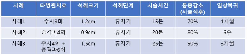 ▲ 시술 3개월 후 X-ray - 석회 완전 제거 ────────────────────────────────────────────────── 사례별 요약 비교